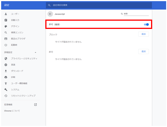 ※Firefoxの規定設定ではJavaScriptが有効になっています。
