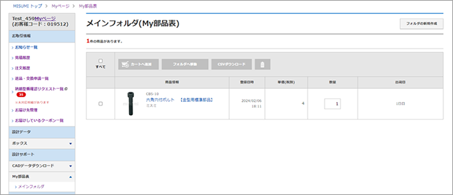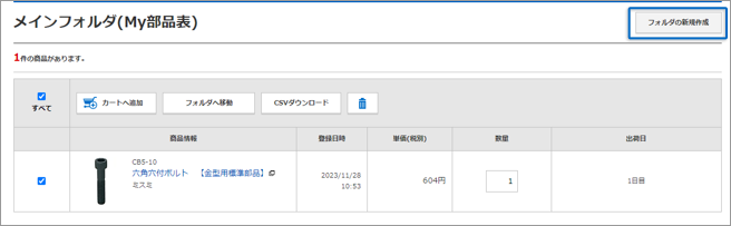 My部品表では、型番等の商品情報を保存し、フォルダで管理をすることができます。