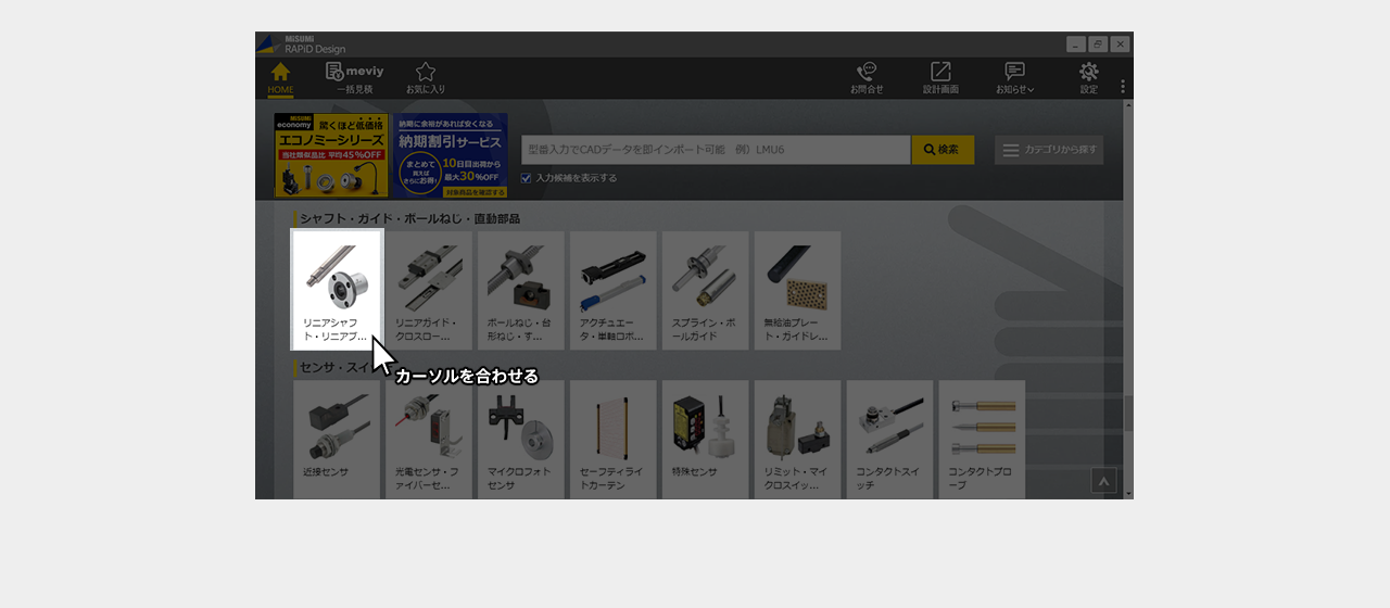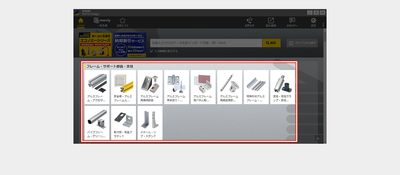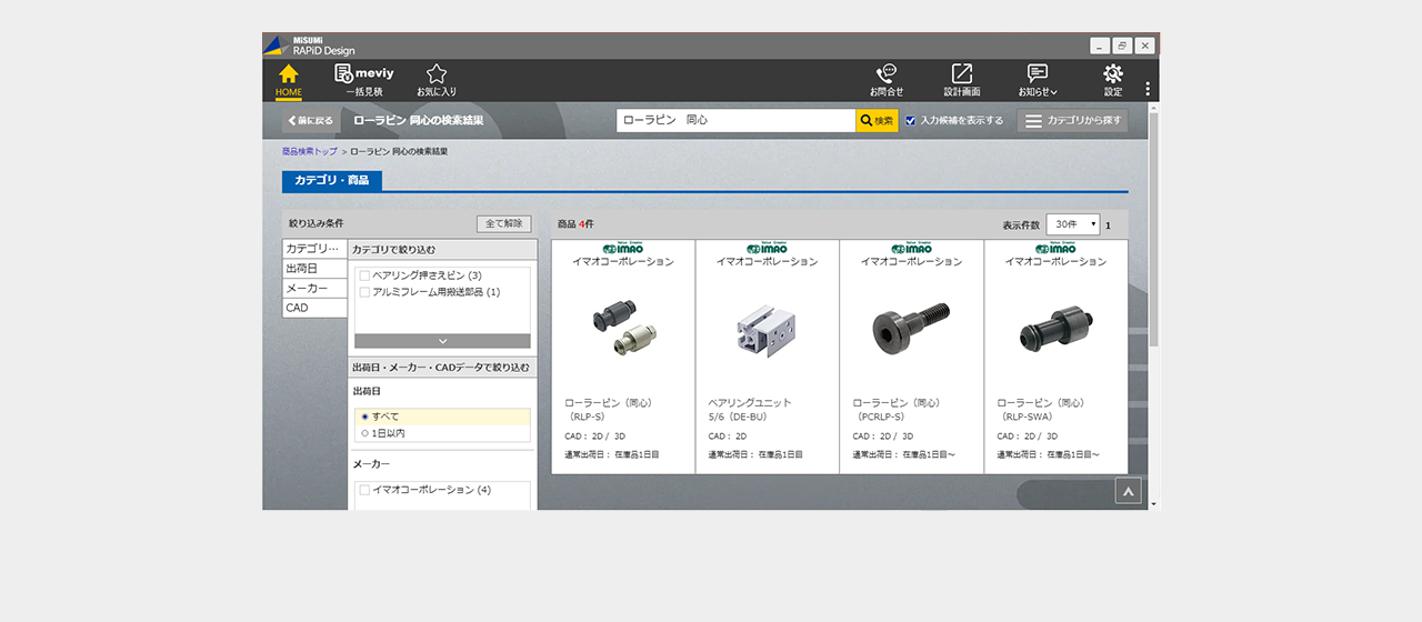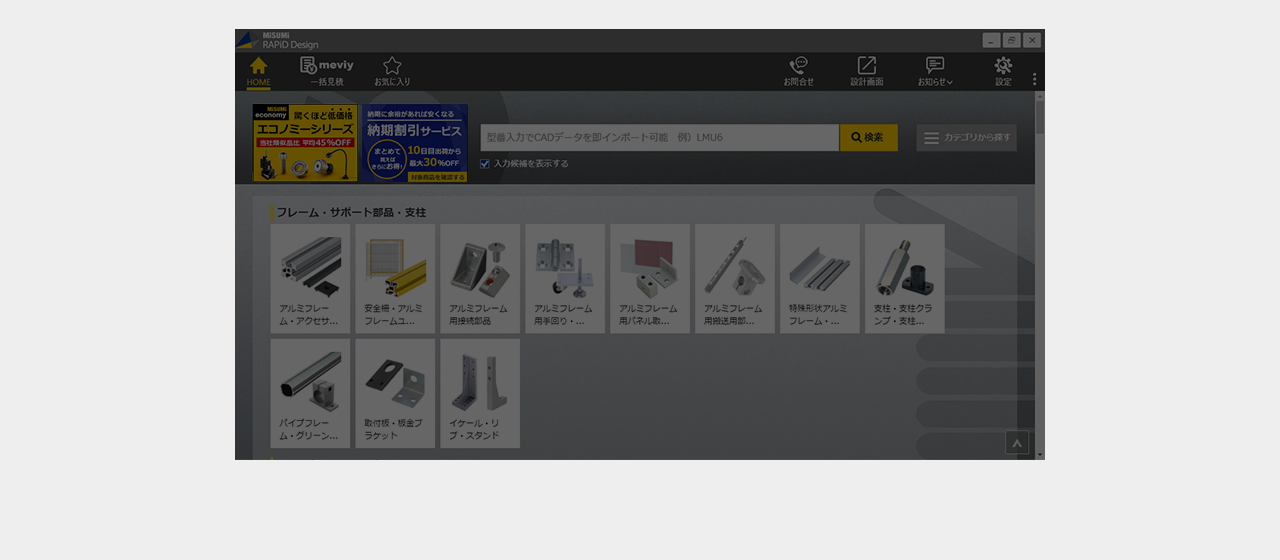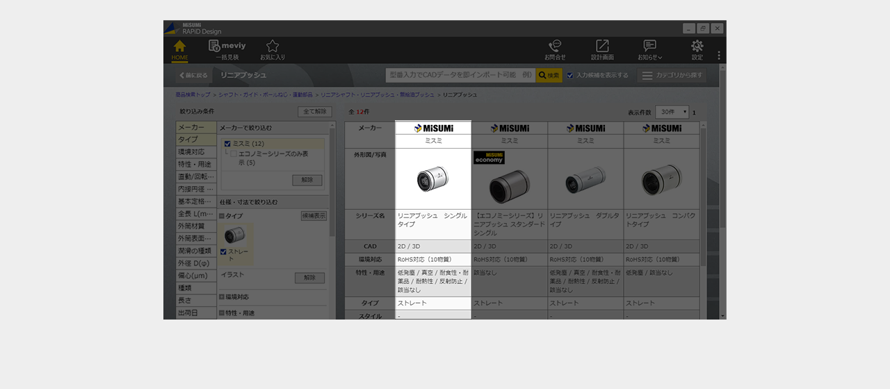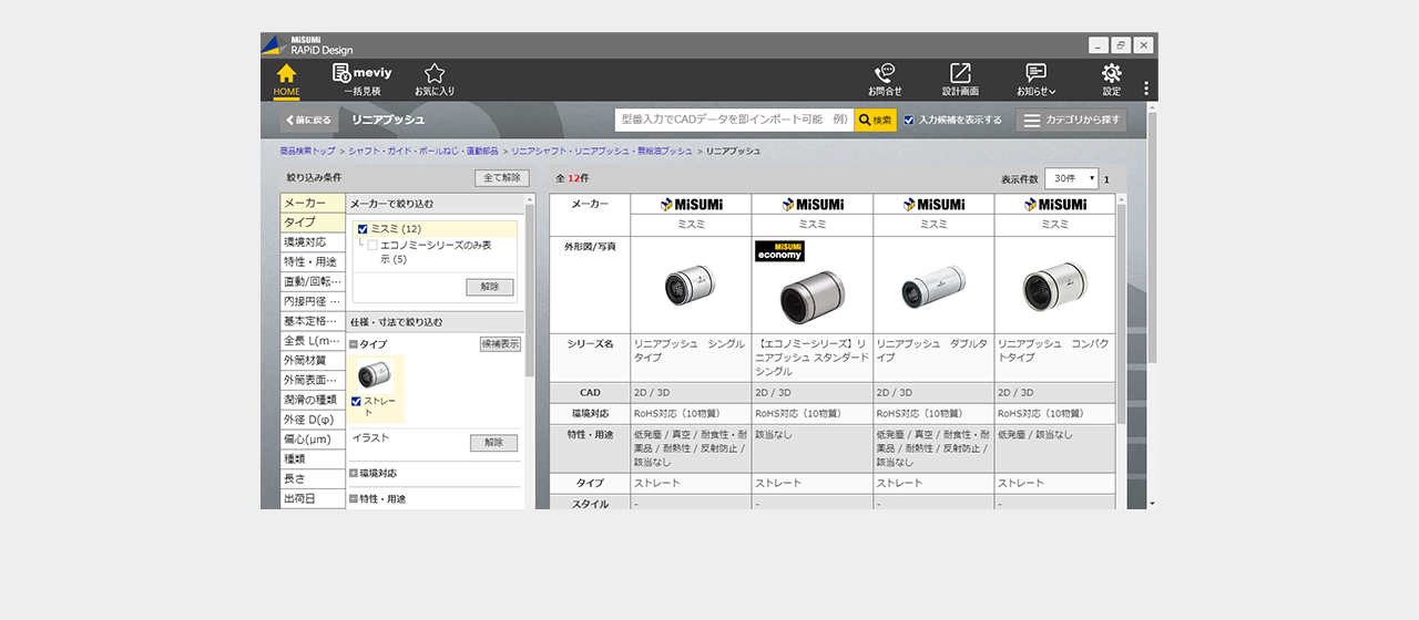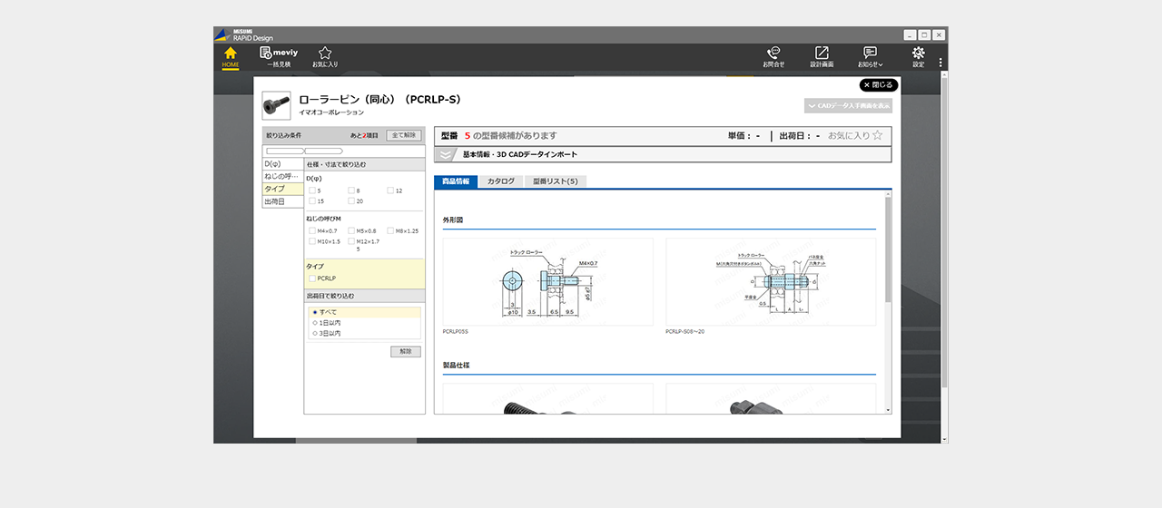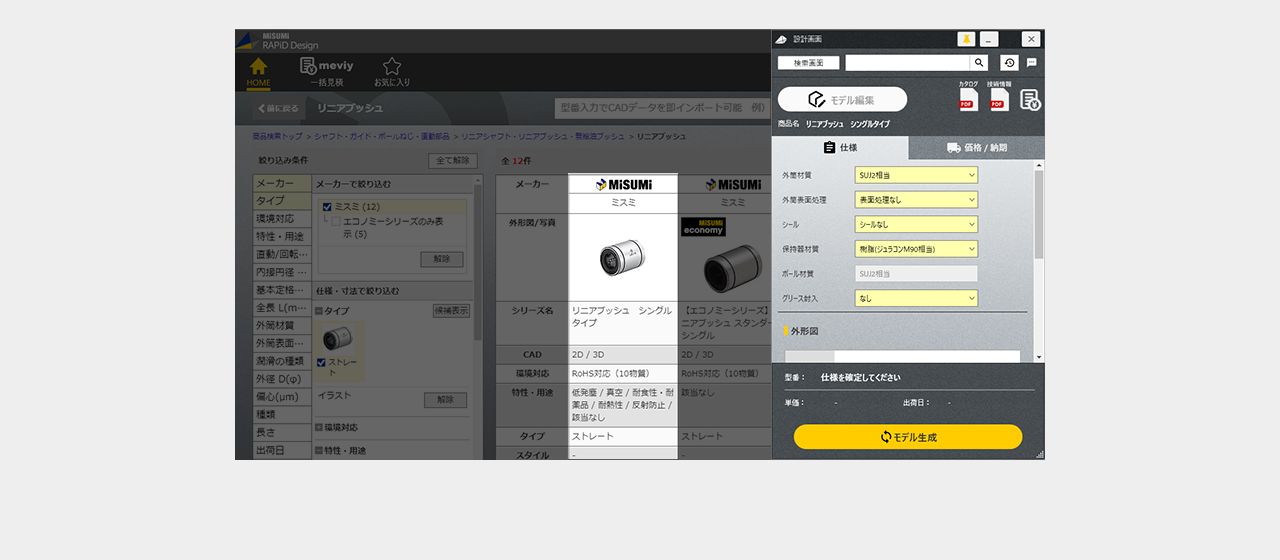 ミスミ以外のメーカー品は検索画面で全ての仕様を選択し型番を確定