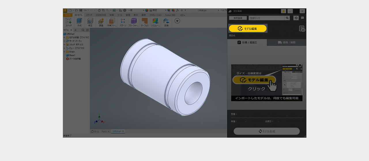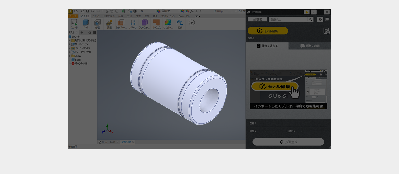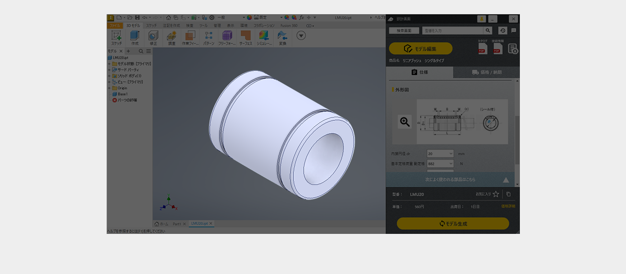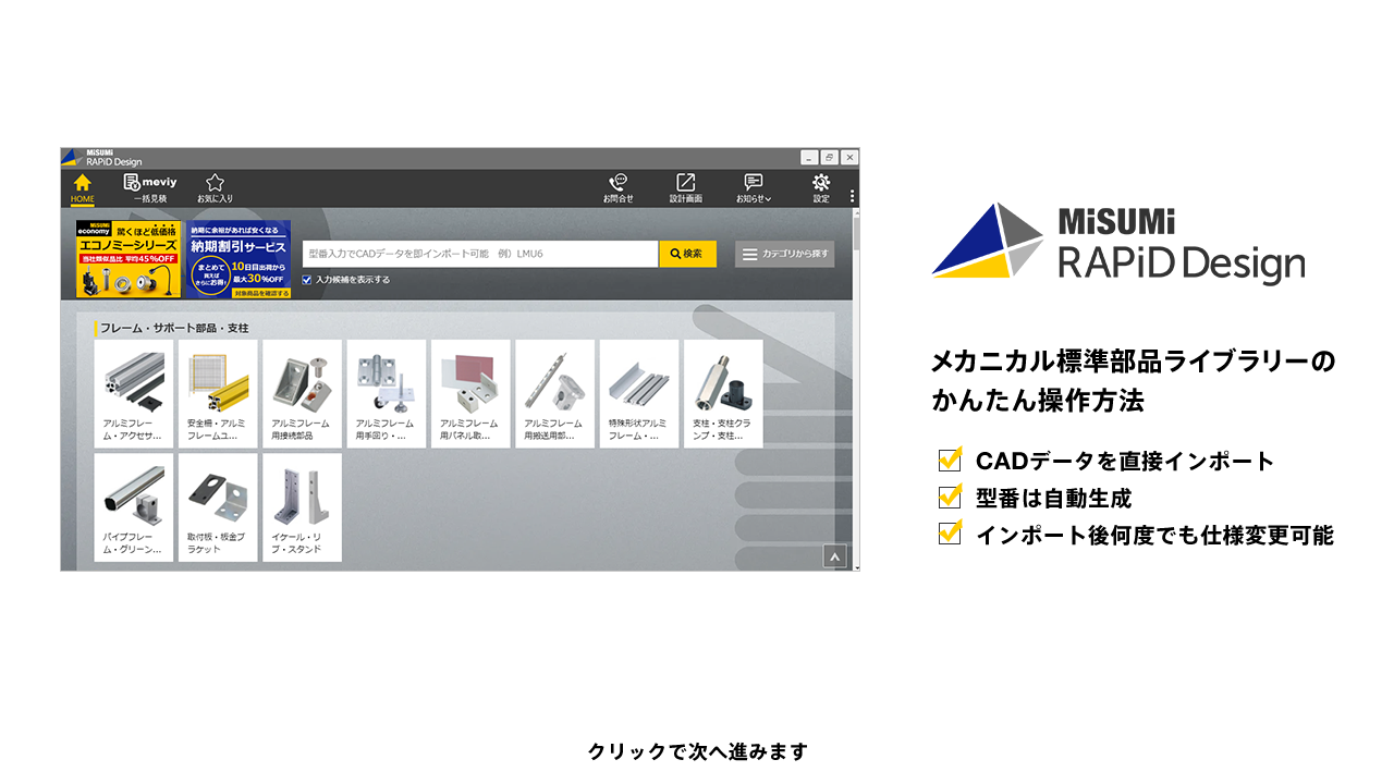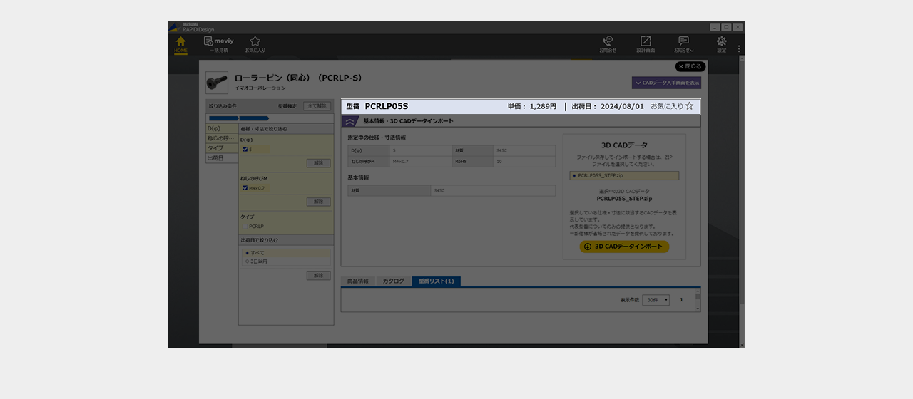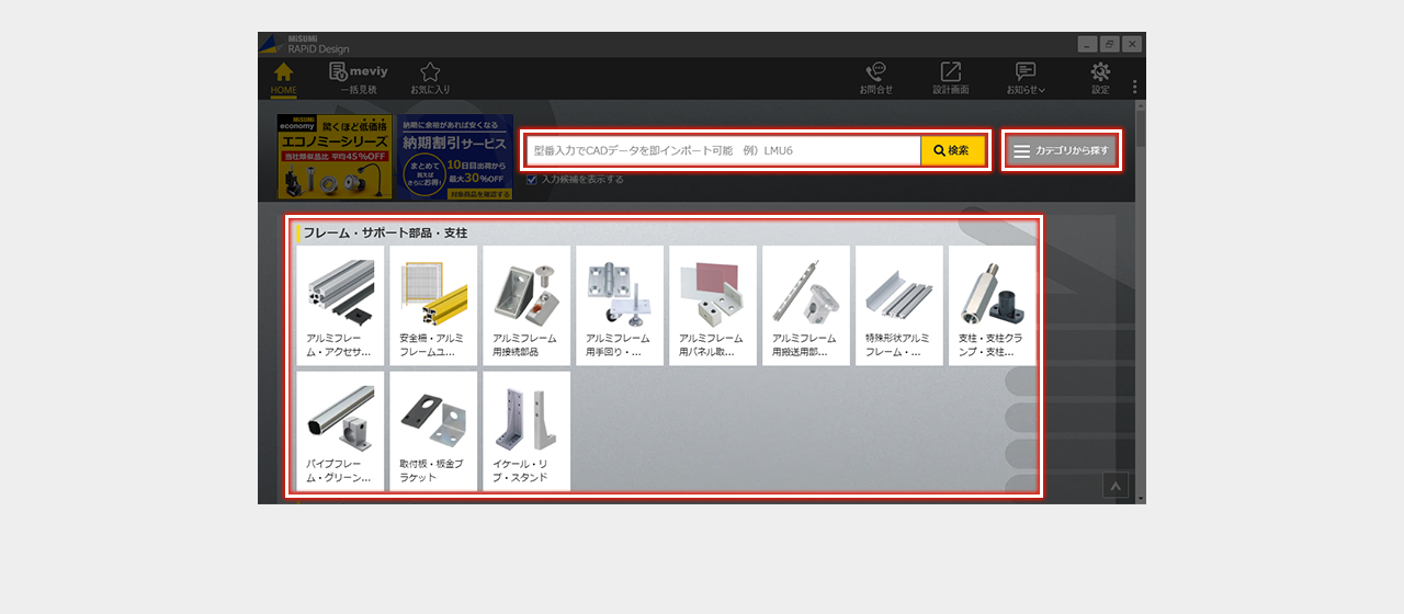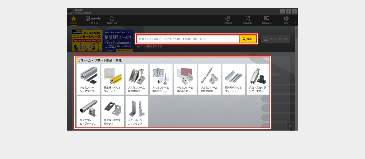 ミスミ以外のメーカー品は検索画面で全ての仕様を選択し型番を確定