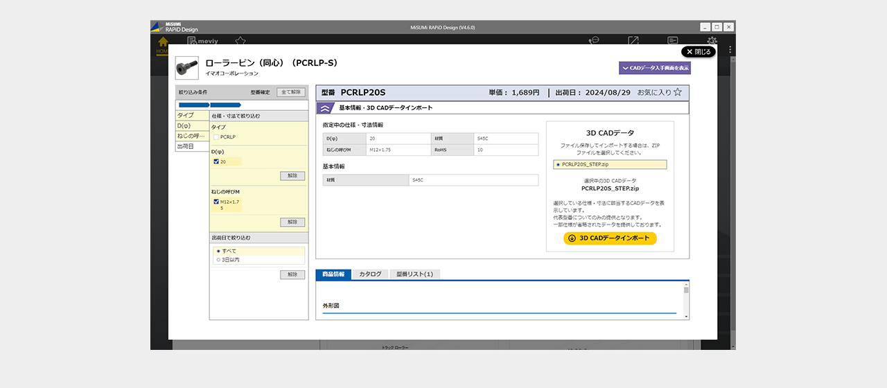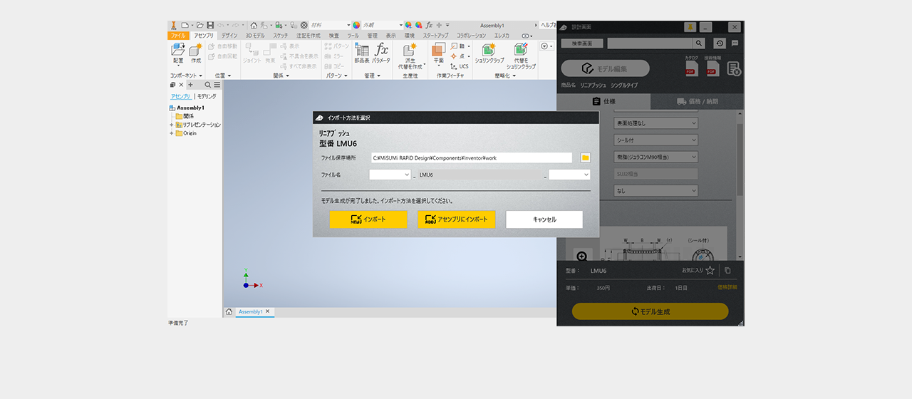 ファイルの保存場所を選択後3D CADデータインポートをクリック