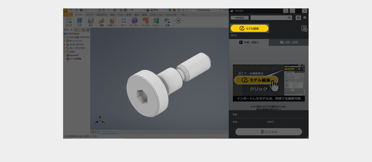 Point CAD上にベースモデルが直接インポートされます
