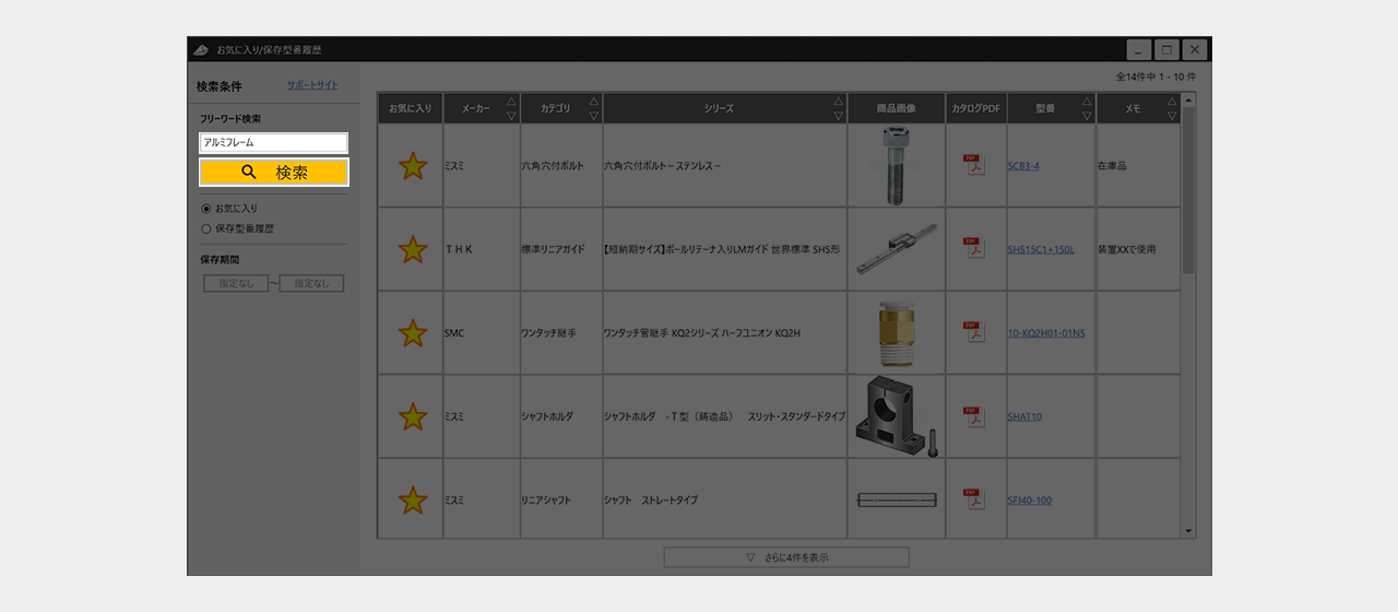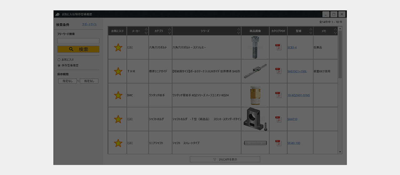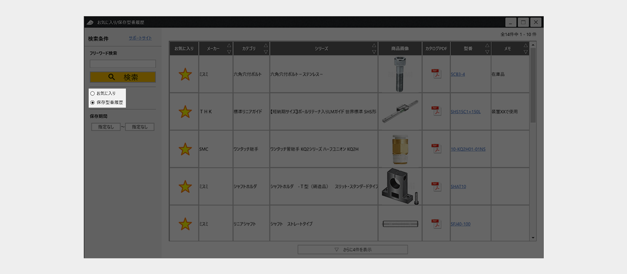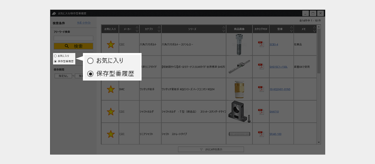 お気に入り/保存型番履歴機能のかんたん操作方法は以上です