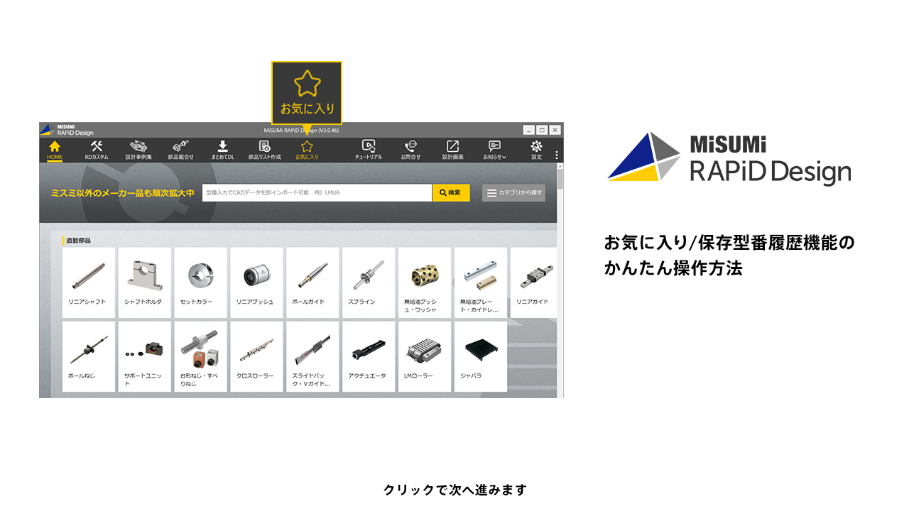 お気に入りと保存型番履歴から CADモデルをインポート可能です