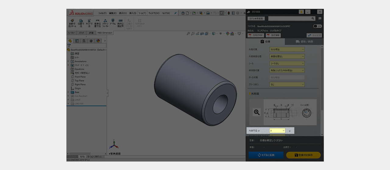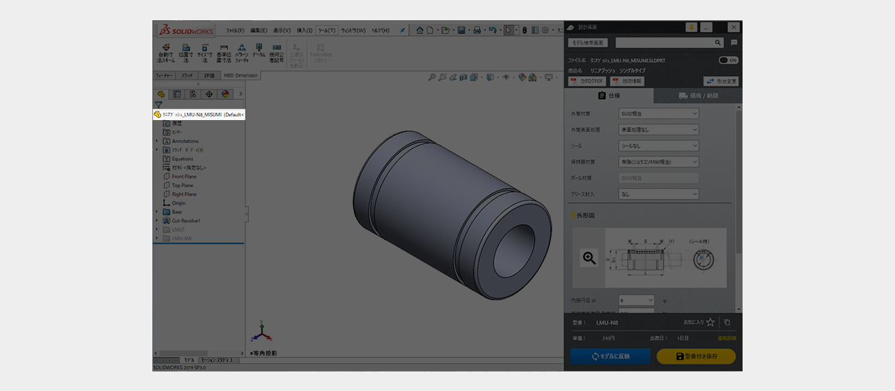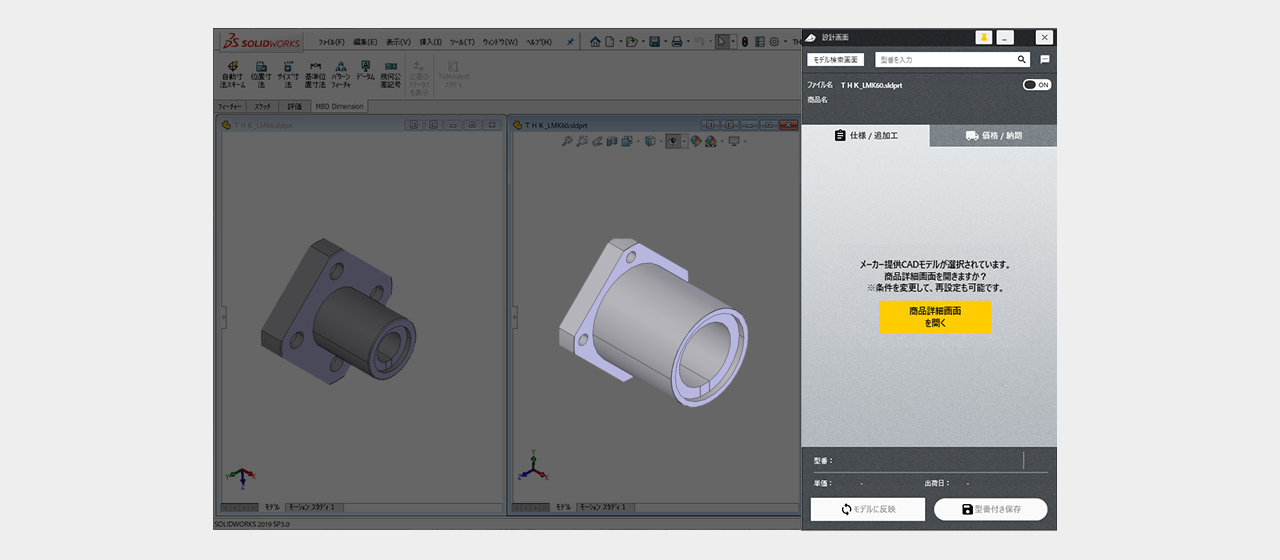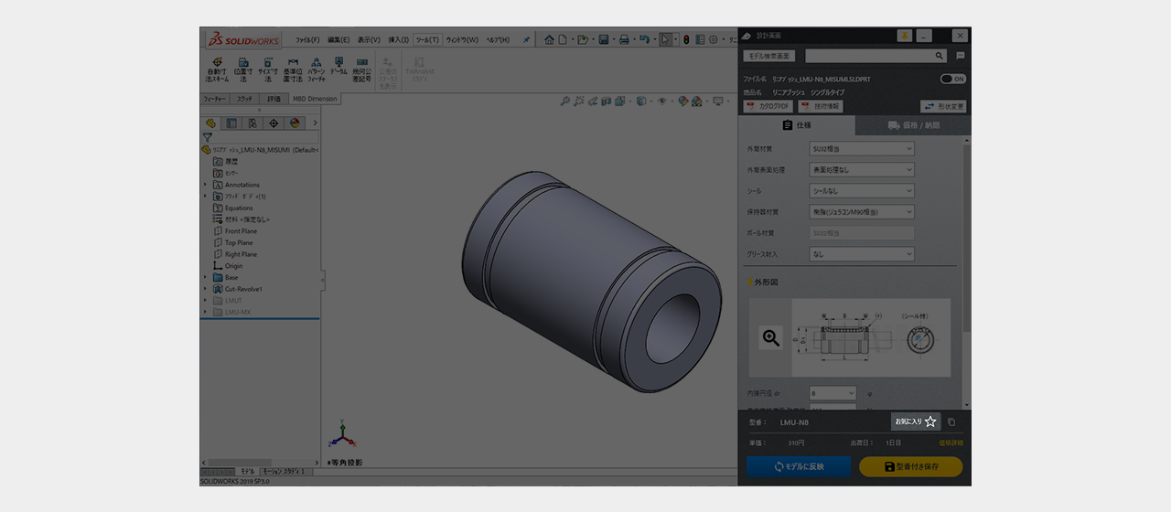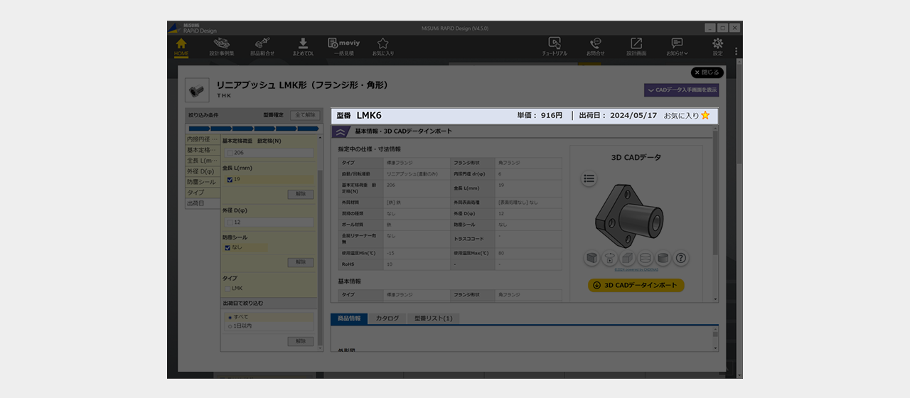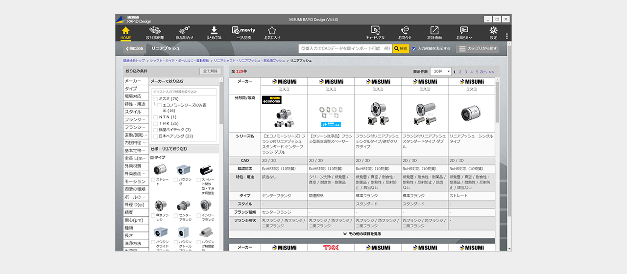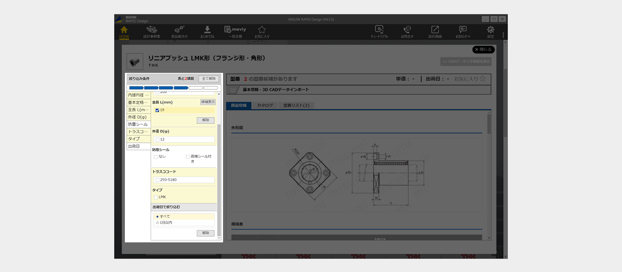 ミスミ以外のメーカー品は検索画面で全ての仕様を選択し型番を確定