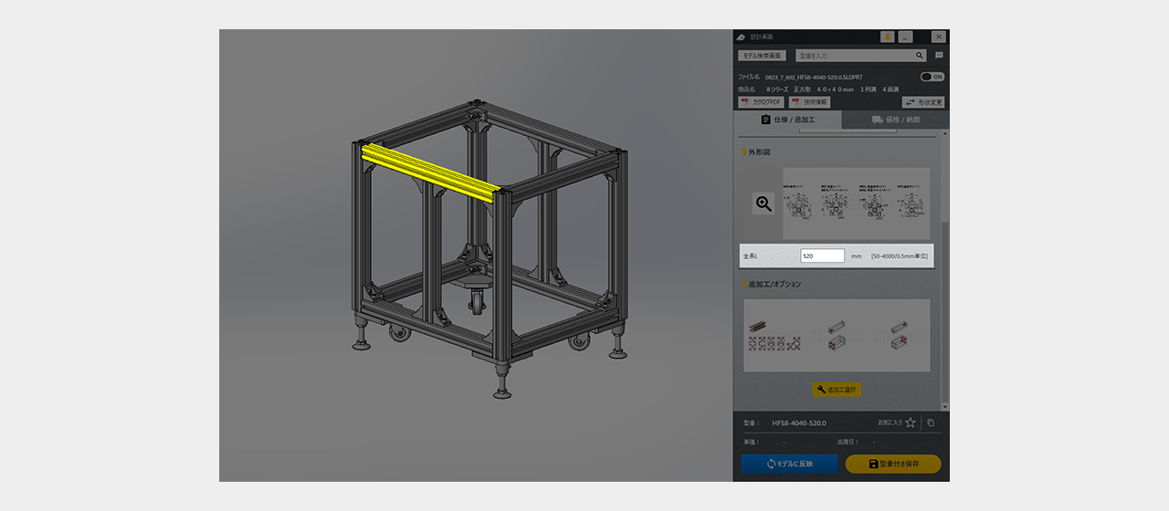 仕様がCADモデルへ反映されます