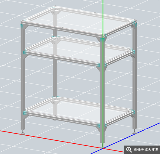 • 今まで使用していた収納棚と同一仕様で、パネルを配置し三段構成に設計