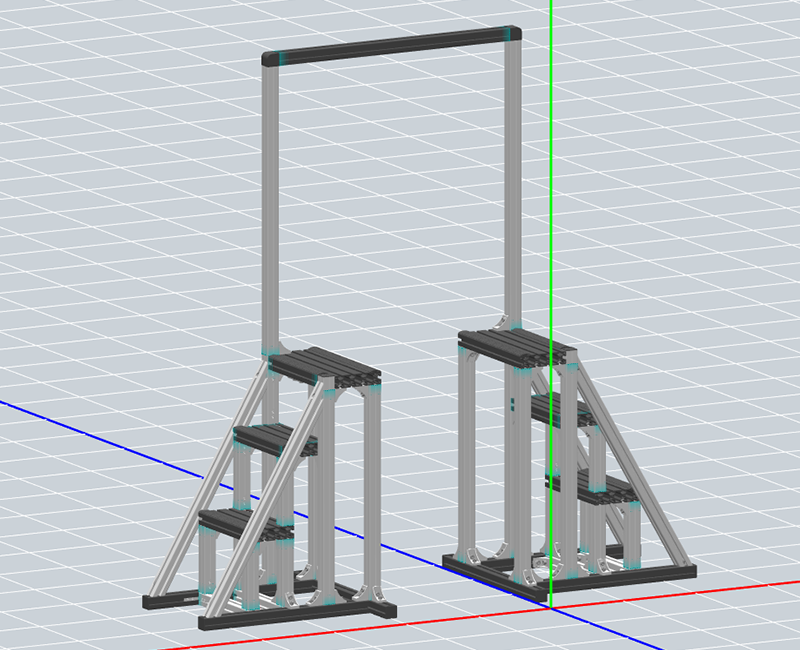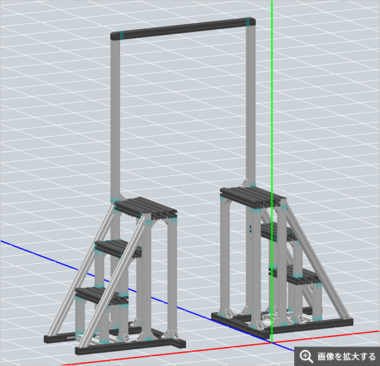 ・格子状でなく斜めに2本の補強用 フレームブラケットを配置 ・ヘックスレンチの下穴をあけ階段ステップ部 とタッピングジョイントで締結