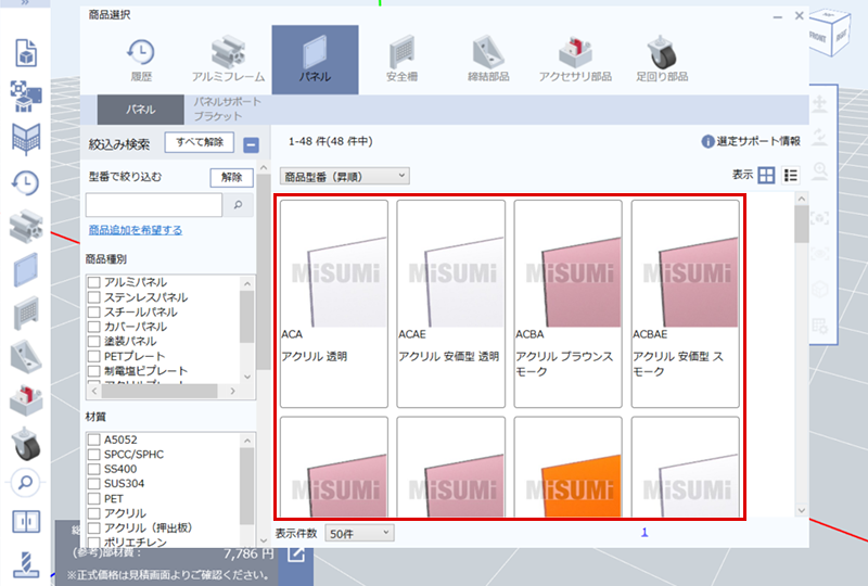 MISUMI FRAMESの組立見積機能