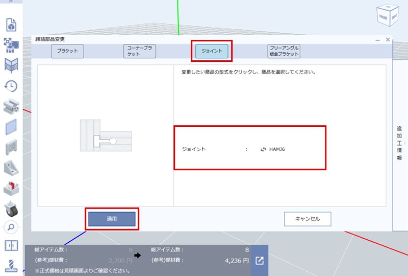 (3)希望のジョイント(※)を選択して「適用」をクリック