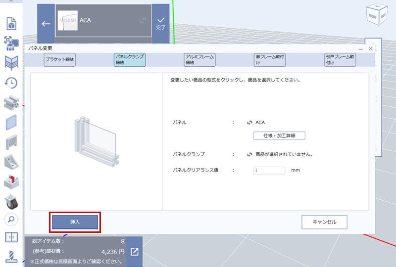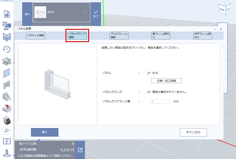 (8)パネルの変更から「パネルクランプ締結」を選択