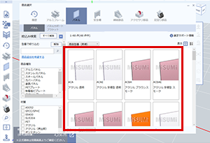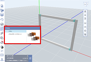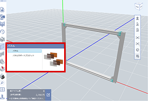 (1)パネルを挿入する枠をアルミフレームで作図し、カテゴリ項目からパネルを選択