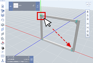 • (4)パネルを取りつけるアルミフレーム面の対角2点をクリック。