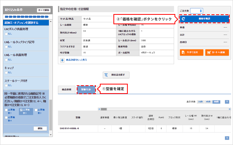 THK商品のご注文の場合は、追加オプションの選択が必要です。